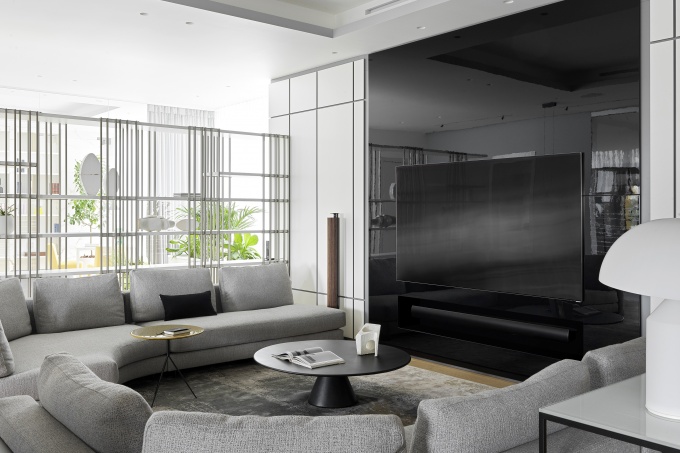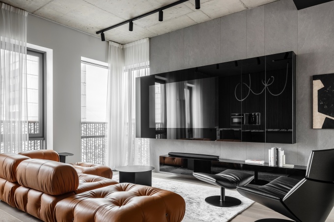 Чтобы связать интерьер с экстерьером, дизайнер Мария Белоусова, руководитель бюро Belousova.interior, предложила сделать акцентом жилого пространства панели из меди и выстроила медный куб, который стал эффектной доминантой минималистичной квартиры. В целом, заказчики хотели современный, сдержанный и запоминающийся интерьер: строгий, монохромный, с большим количеством скрытых мест хранения, без визуального шума, с воздухом и свободой в пространстве.
