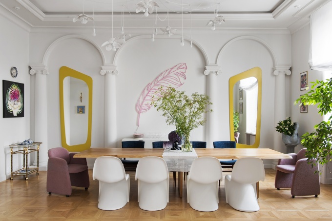 Заказчик живет на два города: работает в Москве, а отдыхает с семьей в Санкт-Петербурге. Он поставил задачу создать классическую, но нестандартную квартиру: живую, воздушную с современным прочтением традиционных решений. Важными критериями были легкость, воздушность пространства и наличие ярких акцентных элементов. Дизайнер соединила классические принципы и современную эстетику, предложив свое прочтение петербургской классики. Получился живой и воздушный интерьер, с яркими деталями и скрытыми смыслами.