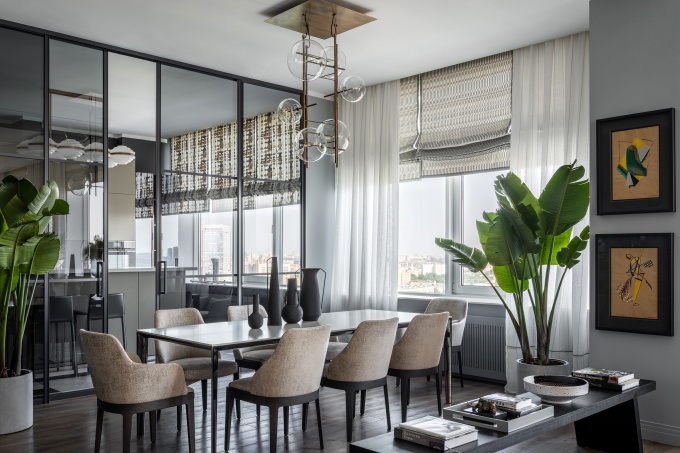 Команда студии Hills оформила квартиру на Шаболовке и вступила в диалог с главной архитектурной доминантой района – Шуховской башней.