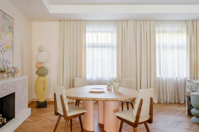 Особенность фасадов здания – исторические архитектурные приемы: арочные окна, крупный руст и «алмазная огранка» декоративных деталей. Именно они вдохновили автора на создание интерьера с необычной пластикой, деликатными рельефными орнаментами и элементами неоклассики.