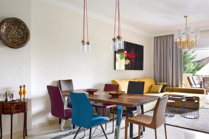 Для давних клиентов дизайнер Ксения Турик оформила апартаменты площадью 127 кв. м в Испании. Квартира расположена в современном многоквартирном доме, открытые террасы которого обращены на Средиземное море. Небольшой курортный городок находится на юге Испании, вблизи Марокко, поэтому дизайнер решила перенести на современную канву восточный колорит, дыхание африканских и арабских мотивов и элементы андалузского стиля.