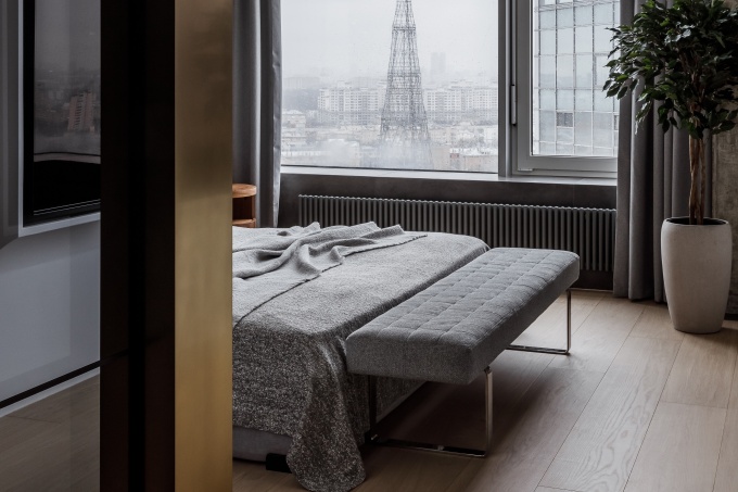 Команда студии Hills оформила квартиру на Шаболовке и вступила в диалог с главной архитектурной доминантой района – Шуховской башней.
