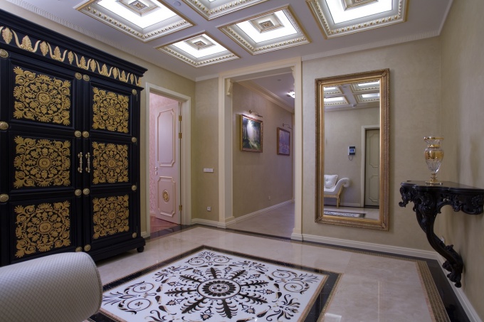В оформлении этой зоны - собирательного образа дома, правильно использовать акцентные, самые эффектные приемы декорирования. Например, мозаичные панно, лепнину, авторскую мебель... Важно определить и центральный элемент, который акцентирует и удерживает внимание.