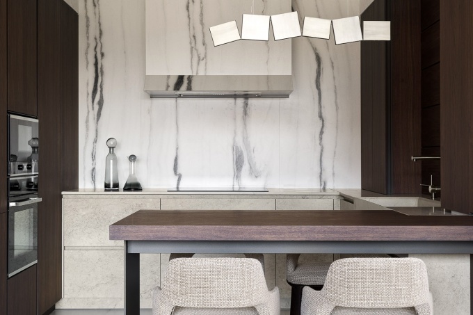 Как много времени предполагается тратить на приготовление пищи, сколько людей проживает в квартире, как часто собираются гости, предполагаются ли семейные обеды или приоритетным считаются быстрые перекусы, и многие другие факторы имеют большое значение, и учитываются дизайнерами, продумывающими такие интерьеры кухонь в частной квартире. Ответы на эти вопросы важны для правильного зонирования имеющегося пространства, выбора бытовой техники и мебели, подбора отделочных материалов, планировки основного и дополнительного освещения.