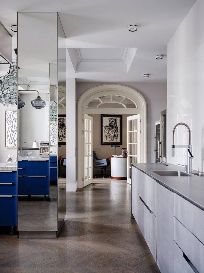 Интерьер кухни в современном стиле в загородном доме. Проект - дизайн-бюро VlaAl. Фурнитура ручка- скоба JOLIE, модель Anvil BRONZE, рукоять-скоба - дизайн Roel Vandebeek.