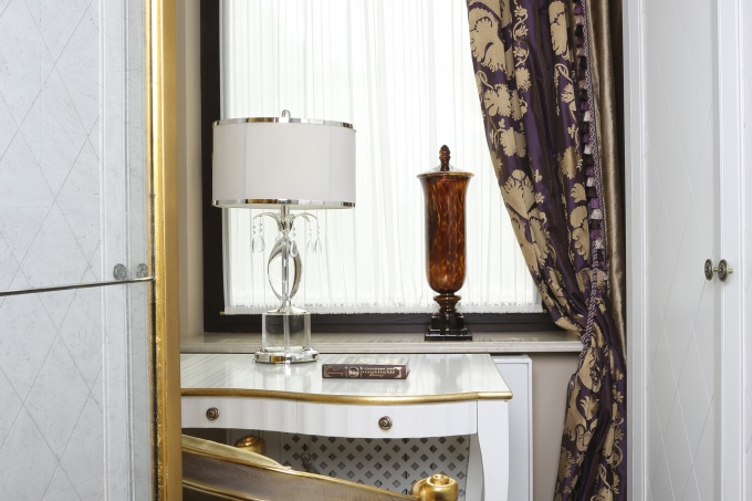 Для создания дизайна будуара в ар-деко особое внимание следует уделить мелким предметам в виде скульптур и статуэток античных героев. Великолепным дополнением оформления станут функциональные бытовые композиции, составленные из ваз, светильников, часов, изделий из бронзы, тканей, стекла и керамики.