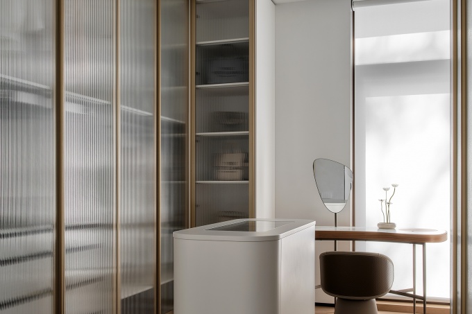 В основу дизайна легли теплые, светлые оттенки: от молочного до песочного. Элегантность воздушного интерьера подчеркивают изделия из латуни, а общий образ усложняют контрастные текстуры дерева и мрамора Arabescato.