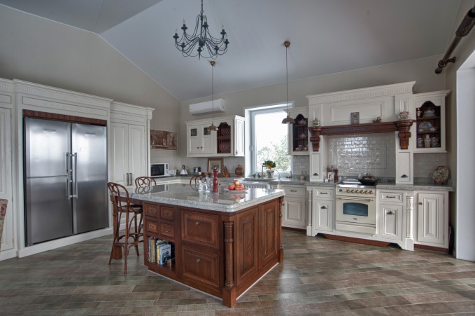 Производство James Brookman, выполняющее эксклюзивную мебель в классическом стиле, имеет в своем составе несколько подразделений: корпусная, мягкая и кухонная мебель. Представляем новую работу James Brookman - кухню в английском стиле, созданную для загородного дома в Подмосковье. Просторное пространство, имеющее полукруглую конфигурацию и ряд оконных проемов, требовало реализации кухонной мебели сложной конструкции.