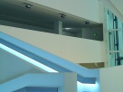 Для выравнивания массивных конструкций и подготовки поверхностей для финишной отделки были использованы самые современные сухие смеси, например, универсальная гипсовая штукатурка КНАУФ-Ротбанд. Кропотливого внимания потребовали потолки, в которых, согласно проекту, должен быть скрыт большой объем инженерных систем и коммуникационного оборудования. На объекте, где использовались подвесные потолки различных типов, широкое применение получили КНАУФ-листы. Потолчные плоскости в пространствах выставочных залов оборудованы КНАУФ-листами (ГКЛ) на металлическом каркасе (П113). В некоторых пространствах использованы модульные потолки.