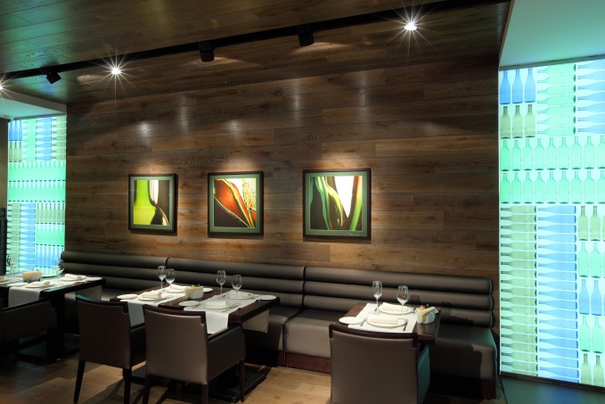 Важнейшей частью освещения ресторана являются проходы, которые нужно правильно освещать. Здесь мы применяем длинные лампы или прямые геометричные конструкции. По форме это удлиненный светильник, прямой и жесткий.