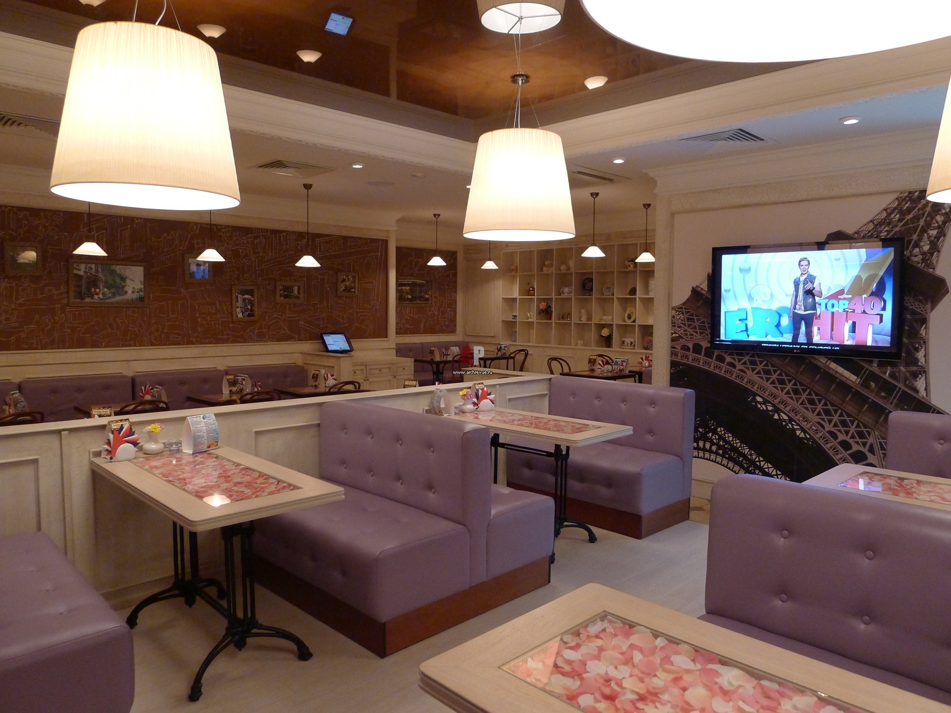 Вот пример использования абажуров в кофейне «Де Пари».