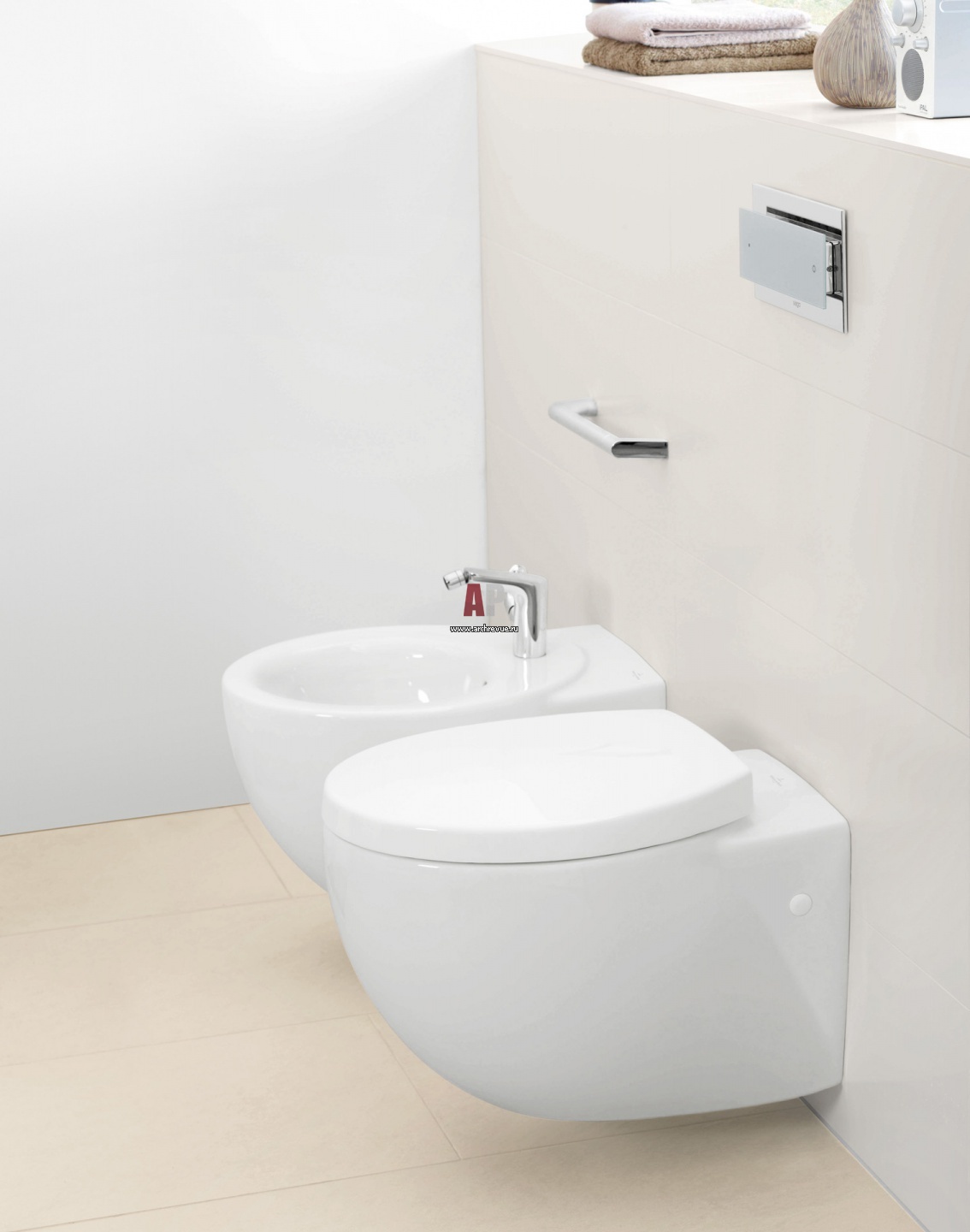 Оригинальный дизайн унитазов и биде остался без изменений. Сиденье для унитаза стало тоньше с более четко выраженными линиями, а для большего комфорта и удобства использования доступны функции Soft Closing и Quick Release. Возможны три различных варианта монтажа унитазов и два варианта биде.