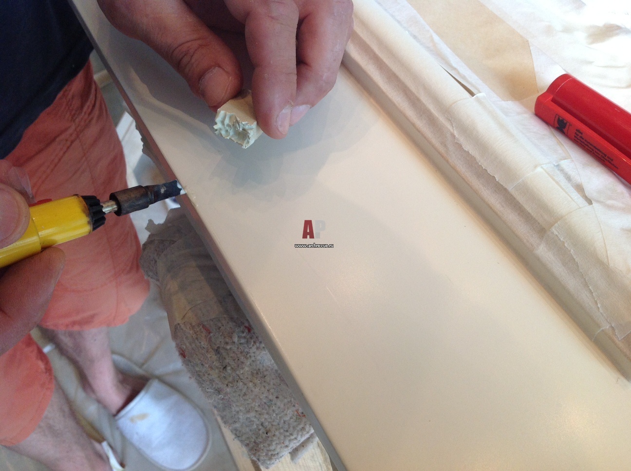 4. Непосредственная работа. Выезд бригады из трёх-четырёх человек с «волшебными чемоданчиками» - лекарствами для мебели. Бригада мастеров работает в рамках оговорённых сроков.