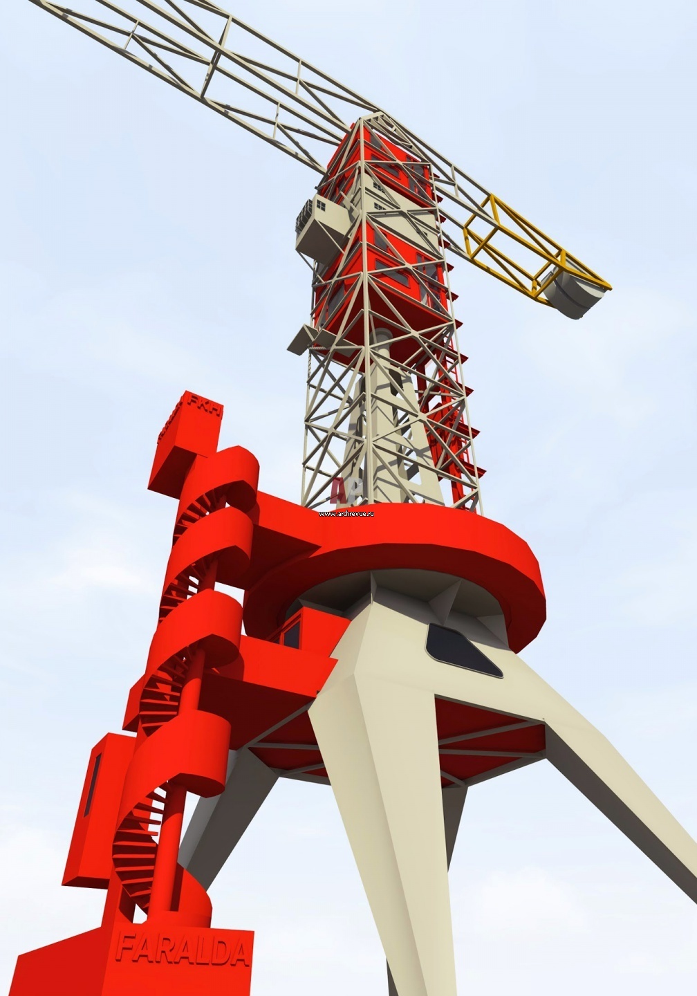 Конструкция крана так вдохновила идеолога проекта Эдвина Корнманна Руди, что идея стала воплощаться в жизнь немедленно – форма крана решительно преобразовывалась в отельный объем.