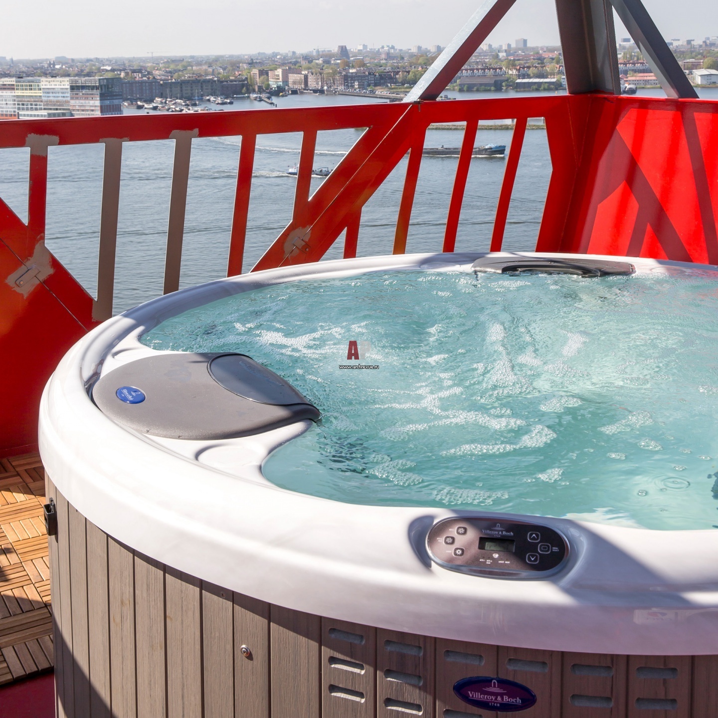 Кроме того, на высоте 50 метров от земли, над удивительными апартаментами расположился открытый СПА-бассейн Villeroy & Boch, относящийся к сегменту люкс.