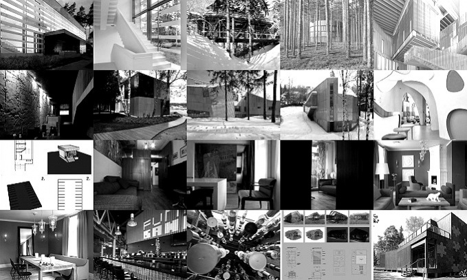 Особенно хочется отметить проект Алексея Козыря – кафе STUDIO 24, получивший первую премию в двух номинациях: «Общественный интерьер» и «Деталь интерьера». В темном двухуровневом пространстве кафе внимание удерживает освещенная бетонная стена. На стене высечены вертикальные барельефы растительного характера. Перегородки и потолок антресольного уровня выполнены из светлых деревянных реек, сквозь которые видно бетонную стену с барельефом. Метафора проекта – свет сквозь стволы деревьев в лесной чаще. Ясный план, мгновенная ориентация в пространственной структуре, игра света и тени, искусство владения пластикой и физикой бетона, мощное настроение – обе премии присуждены проекту за «искусство интерьера» и «искусство в интерьере». Как всегда мощно выступил архитектор Алексей Левчук (г. Санкт - Петербург). Интерьер квартиры он решил двумя росчерками в лучших традициях концептуального модернизма.
