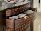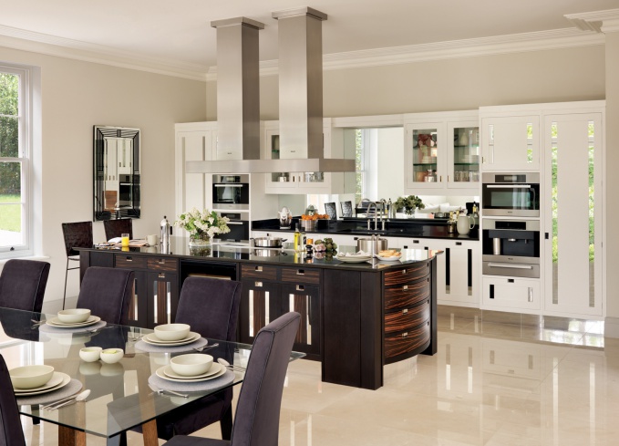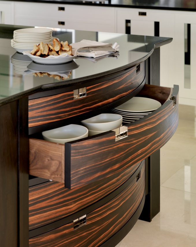 Тонкая проработка деталей кухонной мебели Macassar, элегантная фурнитура, гармоничные пропорции позволяют объединять пространство кухонной, столовой и гостиной зоны в единое интерьерное целое.