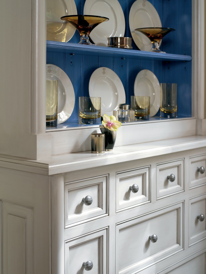 Эта модель – образец кухонной мебельной классики с использованием всех характерных черт этой стилистики: пилястры, филенки, системы карнизов и очаровательная вечно актуальная колористика – топленое молоко. Подробнее см здесь.