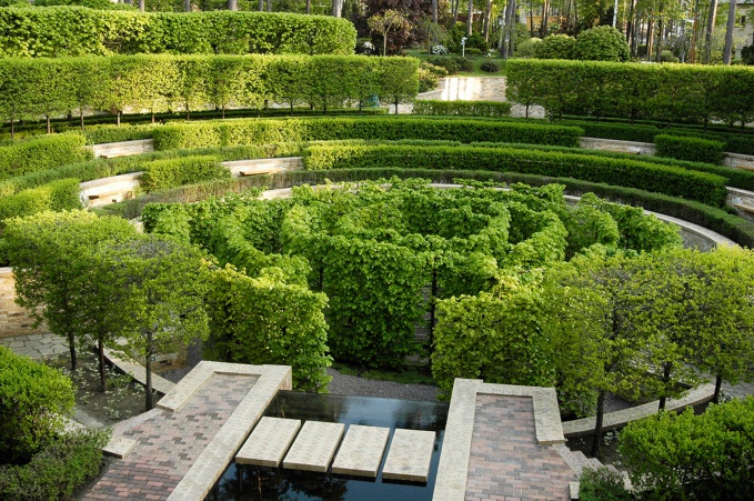 Одним из самых привлекательных чудес сада является Лабиринт из живой изгороди. О создании лабиринтов в ландшафтном дизайне мы подробно поговорим в нашем следующем материале. Однако скажу, что лабиринт, выполненный из стриженой живой однородной изгороди, может стать самым ярким акцентом сада. При этом, проектирование этого великолепного элемента возможно лишь на достаточно объемной площади.