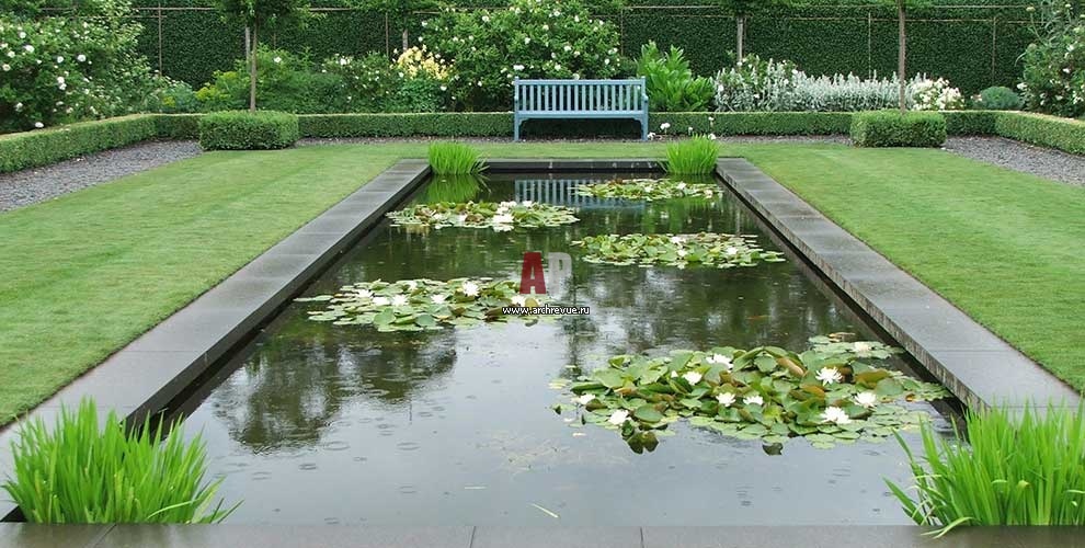 Садовый формальный пруд. Ландшафтный дизайн IL NATURE