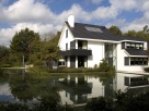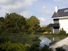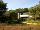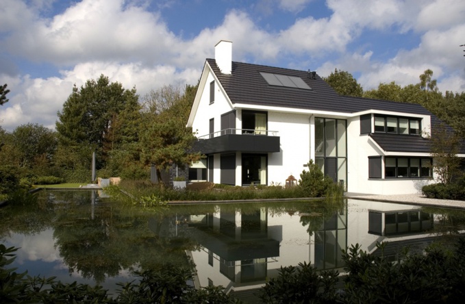 Размещение воды непосредственно перед домом. Современные дома с большими террасами великолепно сочетаются с водой, при этом искусственный пруд может занимать до 1/3 от площади участка. Воду можно подвести прямо к террасе, ее можно видеть из окна дома.