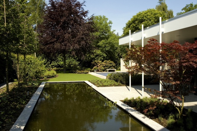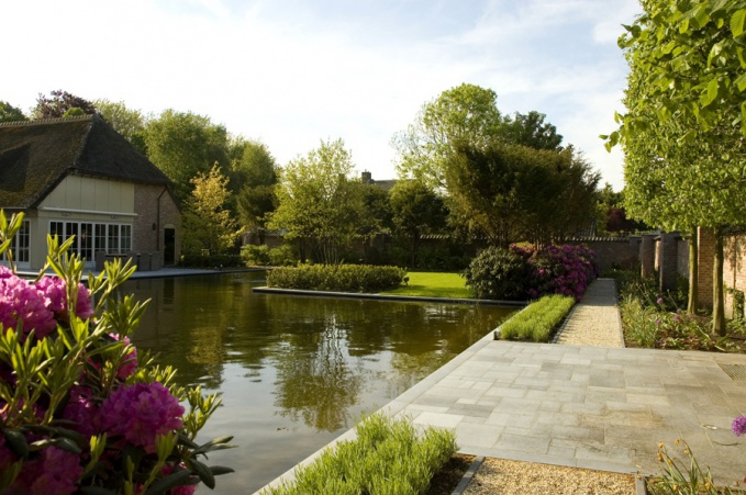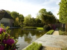 Большой водоем добавляет еще одно измерение на участке, появляется отражение неба, деревьев, дома…. Эффект отражения расширяет и обогащает пространство.