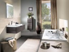 Встроенная заподлицо мебель представлена в различных цветах, в том числе и в новых, таких, как Дерево белое, Лак белый и Лак матовый. Лаконичный унитаз серии отличается своей смывной мощностью: расход воды на один слив составляет от 3,0 до 4,5 л. В коллекцию входит компактное биде и писсуар с минимальным расходом воды.