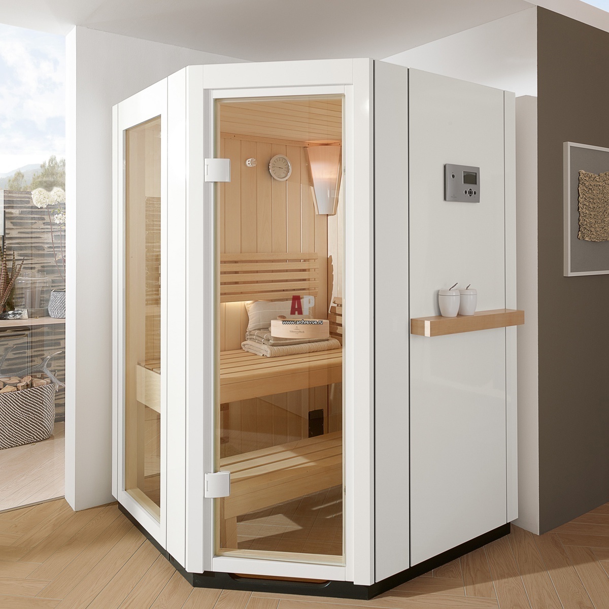 Компактные домашние сауны из ассортимента Villeroy & Boch могут стать великолепным решением в оснащении санузла в мансарде. Например, мини-сауна SA-Line Vivia, она стала первым комплексным wellness-решением компании в стиле all inclusive. Мини сауна представлена в 2 размерах и дополнительно оснащена функцией инфракрасного излучения.