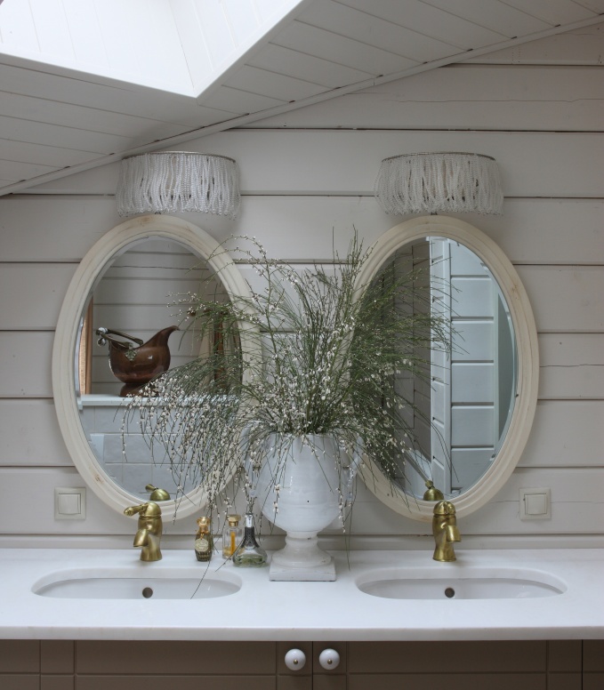 При оборудовании ванной комнаты в мансарде стоит задуматься над визуальным расширением помещения. Уклон крыши может значительно уменьшить пространство, поэтому для мансард отлично подойдут компактные модели ванн. Кроме того, визуально расширить помещение поможет отделка стен в светлых тонах и контрастные штрихи, которые оживят пространство и придадут санузлу динамику.