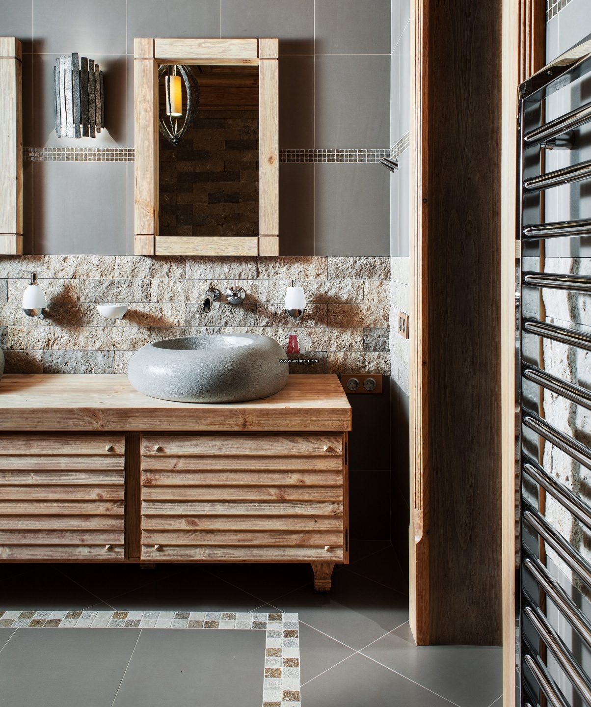 Санузел укомплектован мебелью, раковинами и ванной Villeroy & Boch. Автор проекта Мелконян Армен. Подробнее об объекте здесь.