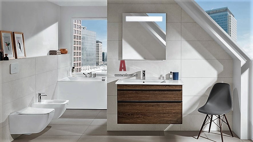 Особую роль играют тумбы под раковину. Дизайнеры Villeroy & Boch предлагают несколько коллекций мебели для ванных, конструкции которых могут идеально вписаться в помещение с ограниченной высотой и при этом обеспечивают удобство этой мебели как системы хранения.