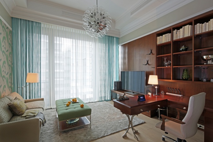 Интерьер детского кабинета. Обои, мебель, свет - поставщик Charles.Cameron. Автор проекта Ольга Кушнарева-Леоне. Подробнее об объекте здесь.