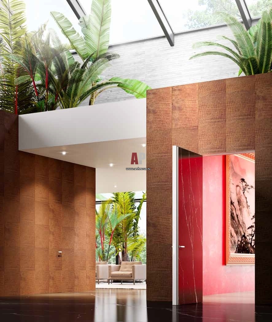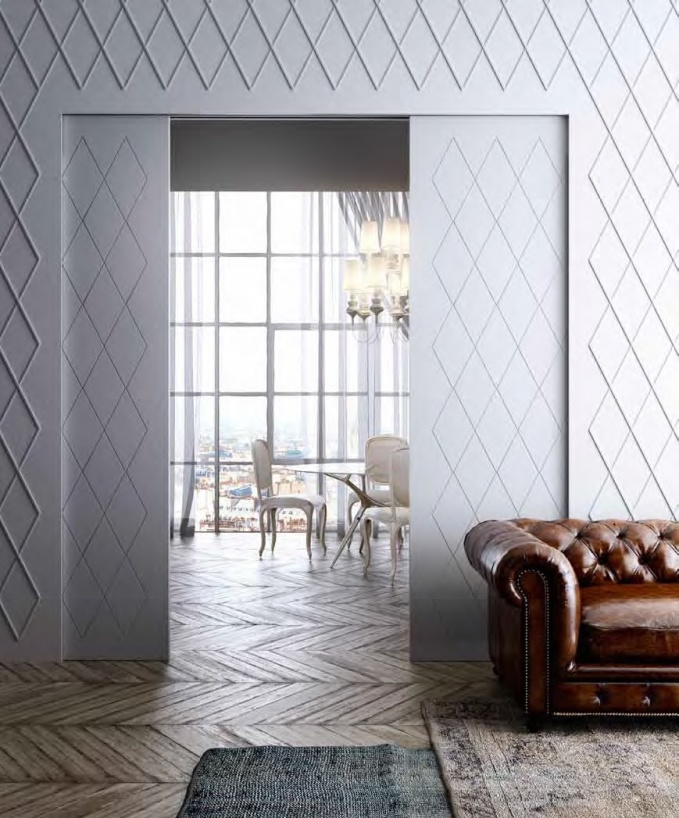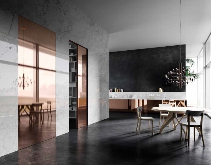 Диапазон решений чрезвычайно широк: от дверей - «невидимок», являющих собой «камуфляж» на любом типе поверхности – от бетона до живописи, до дверей–акцентов, выделяющихся из стены, благодаря выбору отделок.