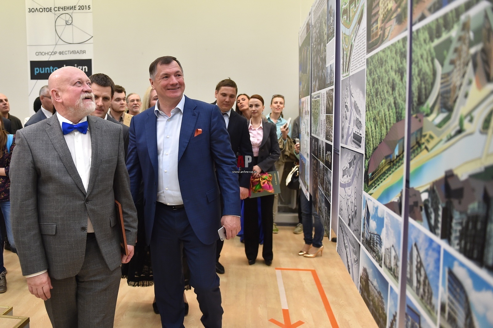 20 апреля, 19.00 - Подведение итогов смотра-конкурса на Премию «Золотое сечение» и торжественная церемония награждения победителей. В конкурсе участвует около 150 работ, выполненных московскими архитекторами без привязки к географии проекта. Высшая награда фестиваля — бронзовый барельеф со стилизованным изображением символа премии вручается в двух разделах: «Проект» и «Реализация».