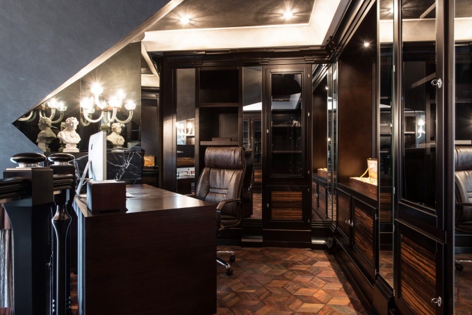 Интерьер кабинета зависит не только от типологии, но и от принадлежности – мужской, дамский или детский, и от стилистики, в которой оформляется. Однако независимо от стиля, набор столярных элементов, используемых в оформлении кабинетов премиального уровня, четко определен: системы хранения всех типов: книжные стеллажи, шкафы как встроенные, так и отдельно стоящие, системы корпусной мебели, связанные общей стилистикой, материалами, декоративными решениями.