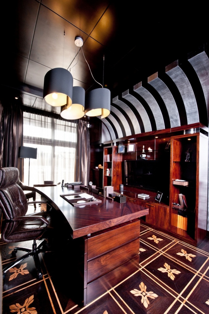 Как известно, существует несколько типов кабинетов: кабинет для работы, кабинет для уединенного отдыха, приемный кабинет, кабинет-будуар, который примыкает к спальне или является ее частью… К примеру, в кабинете для работы доминантной является рабочая зона – максимально функциональная, оснащенная всеми необходимыми владельцу элементами – системами связи, оргтехникой, ПК, элементами хранения документации и так далее.