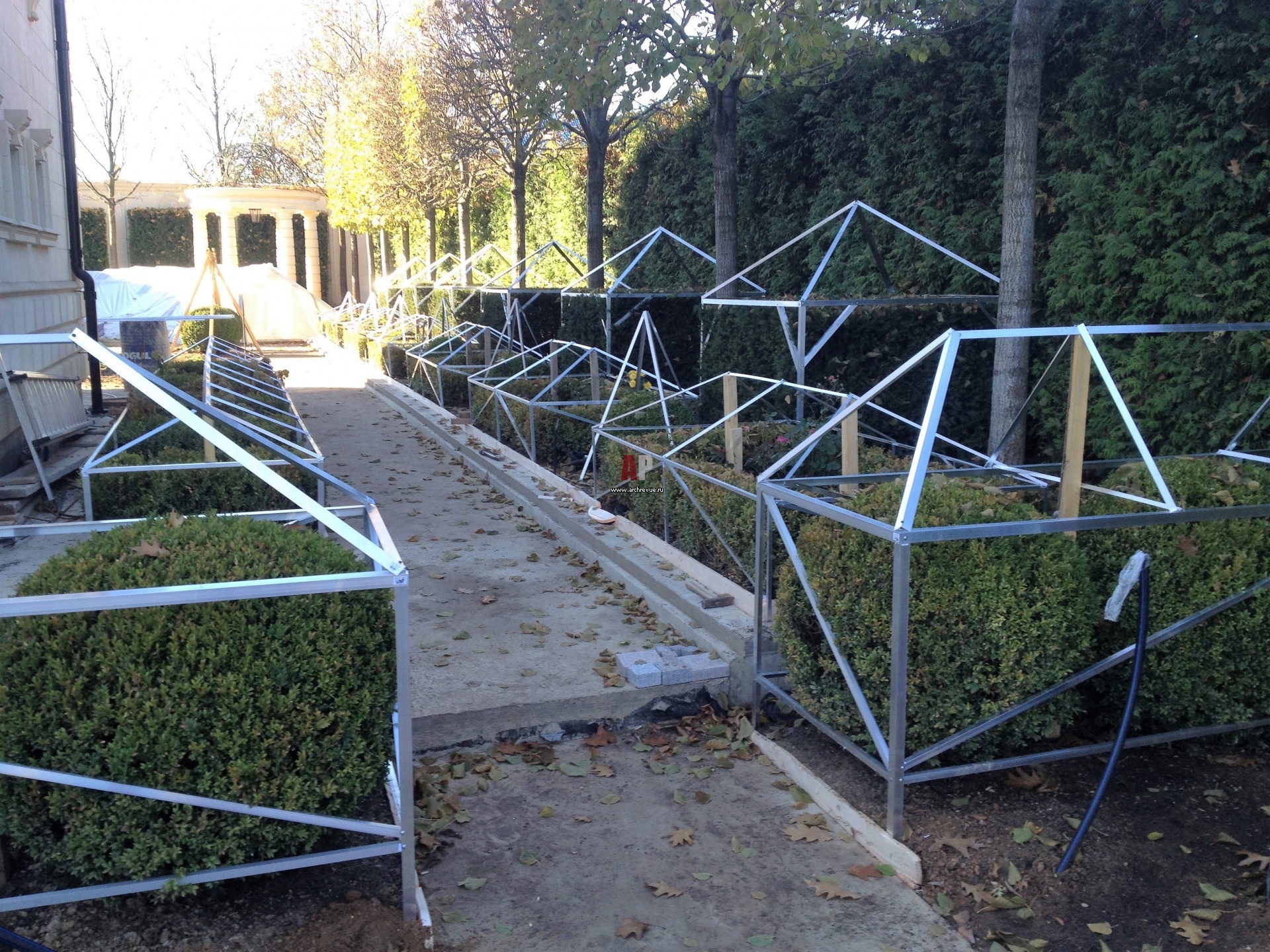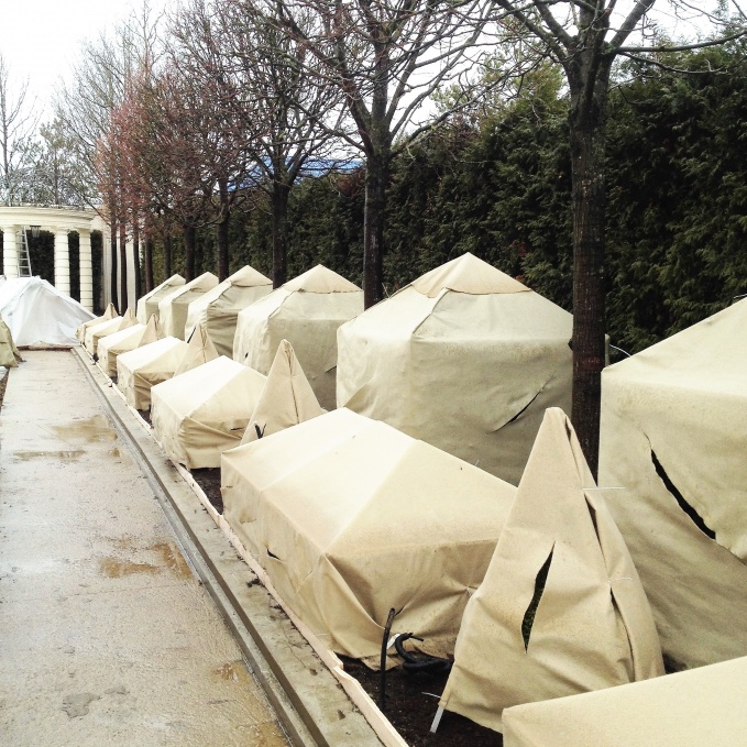 Поэтому мы используем тисы и самшиты, закрывая их на зиму элегантными белыми чехлами или лапником. Это удорожает эксплуатацию сада – надо закрыть, открыть, убрать – это дополнительный расход средств. Но в наших условиях эти растения выживают только с укрытием.