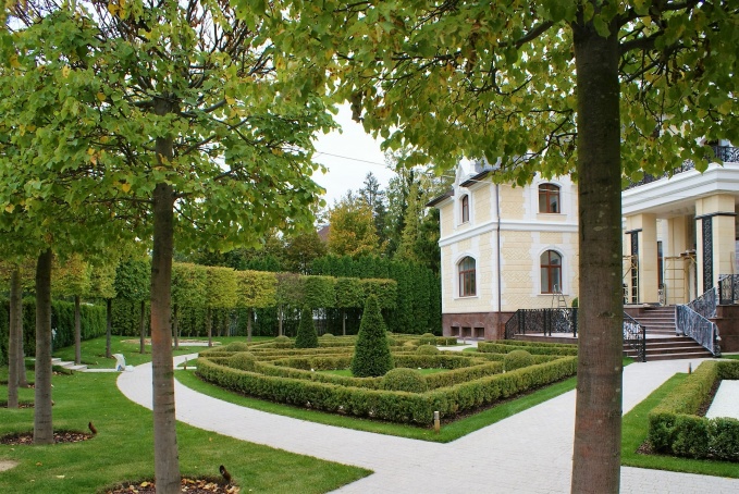 Существует определенная сложность в подборе растений для нашего климата. Традиционно для создания регулярной планировки используют самшиты и тисы – они более всего подходят для формовки. Но у нас они не растут. В России стригут и формуют ели и лиственные растения, например, спирею. Стриженные ели, из которых образуют изгородь, очень хороши. Однако лет через 10 у них оголяются нижние части стволов – это особенность.