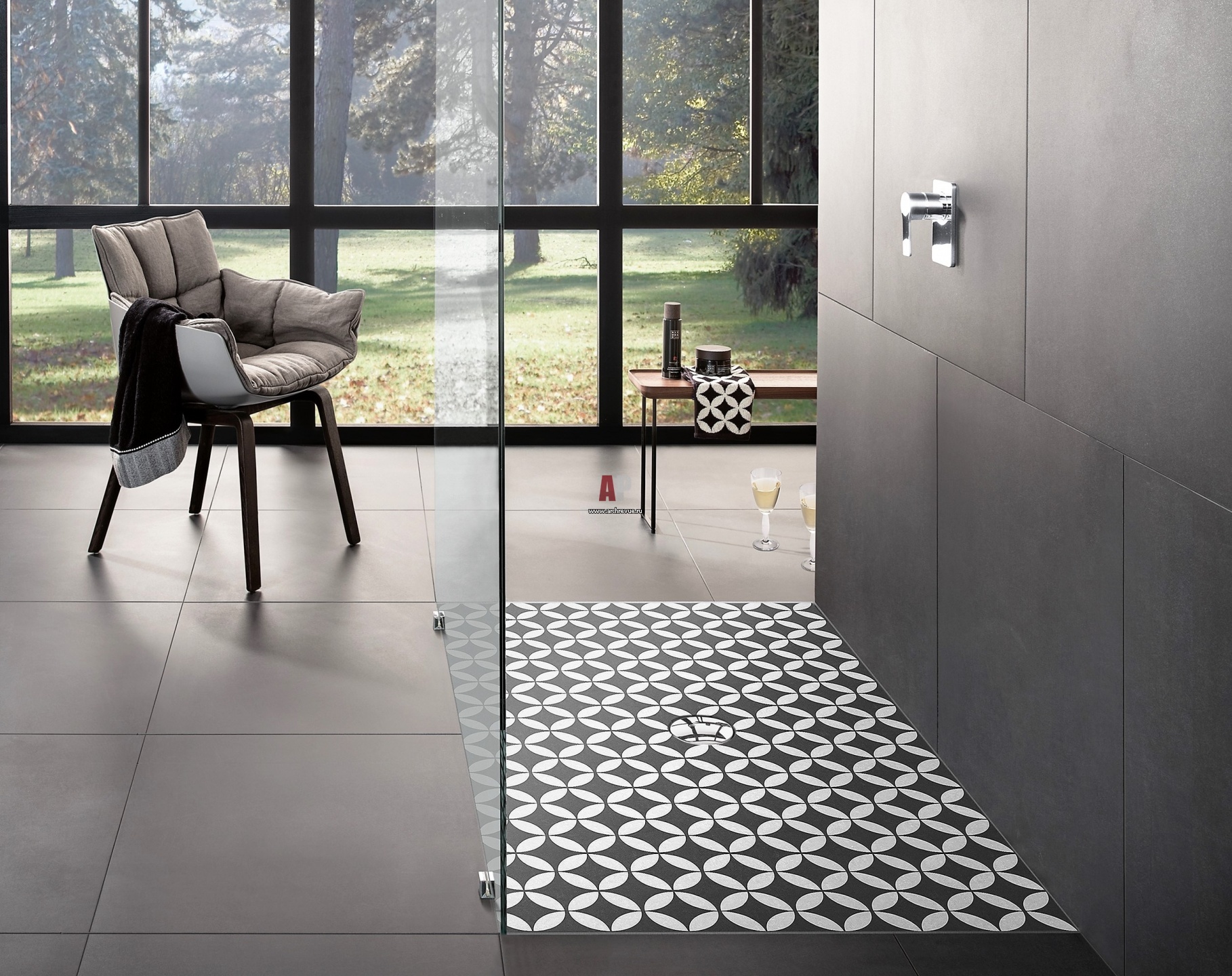 Темные тона серого цвета со структурным эффектом, напротив, ассоциируются с величием горных склонов и создают эффект легкости и медитативного спокойствия.