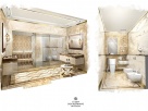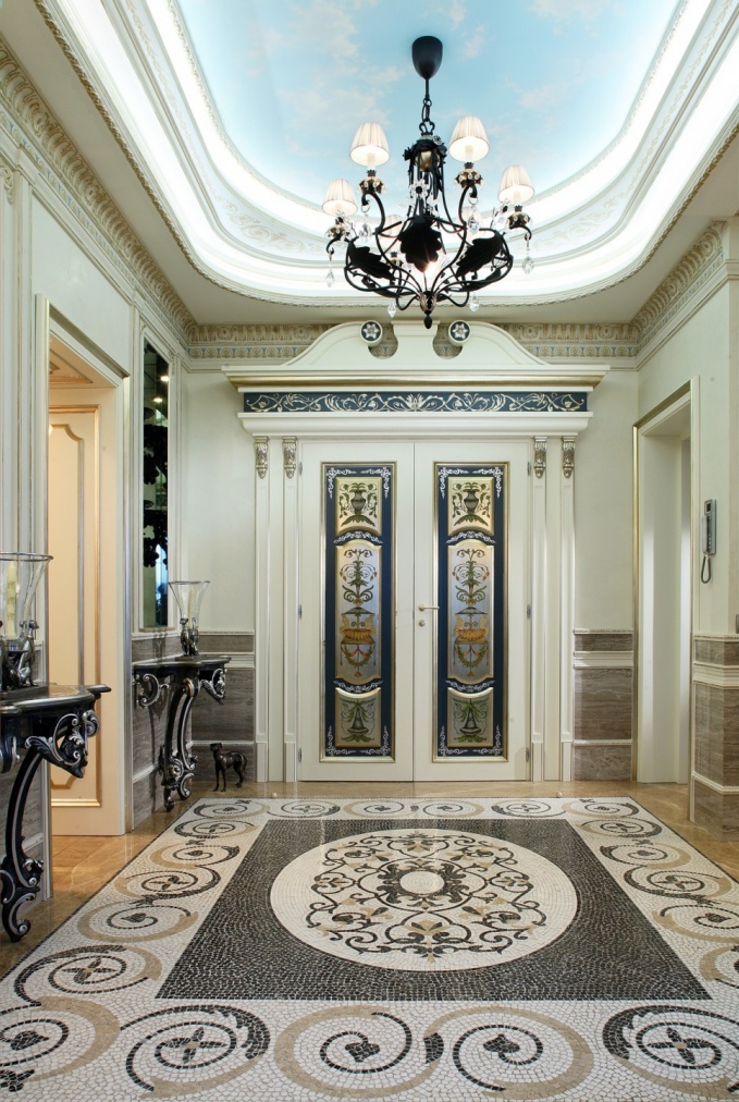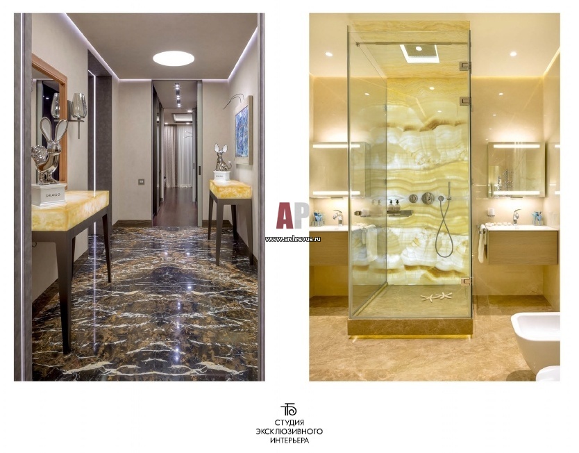 Важна работа по цвету, требующая поиска. Мы определяем цветовую гамму, а потом начинаются выкладки, выкрасы, согласования… Важно, чтобы интерьер не заслонял собой дорогие инсталляции – двери, мебель, сантехнику. Нужно найти меру. Эти задачи под силу только профессионалу…