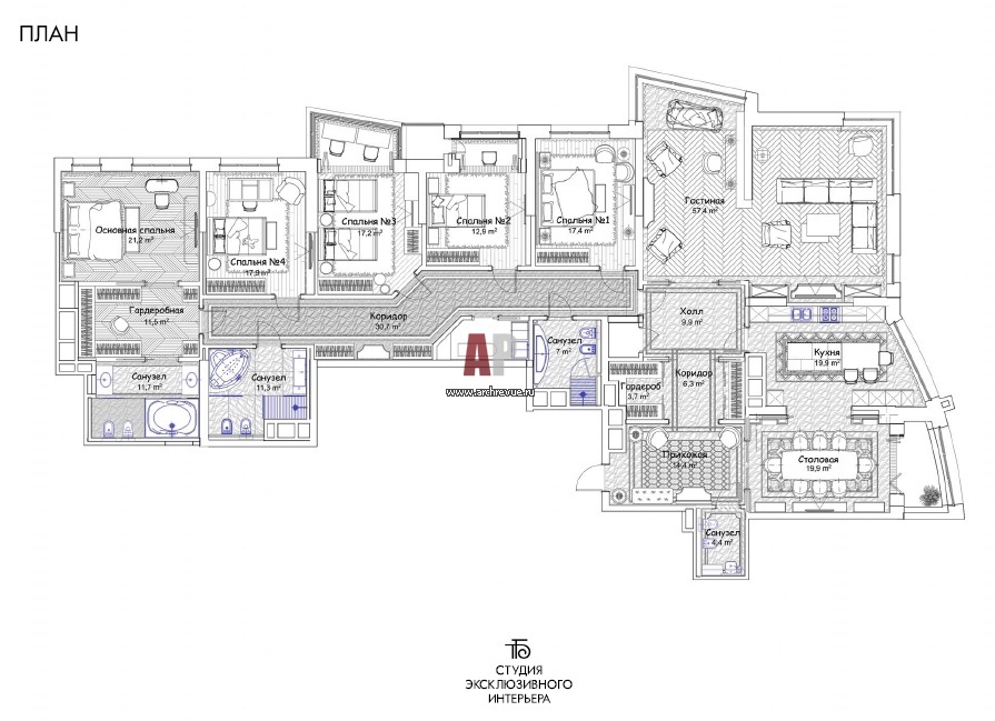 Основной критерий – баланс: дорогие квартиры, дорогое наполнение… Для клубных домов мы разрабатываем оптимальные европейские планировки с набором жилых и подсобных помещений необходимым для высокого уровня комфорта.