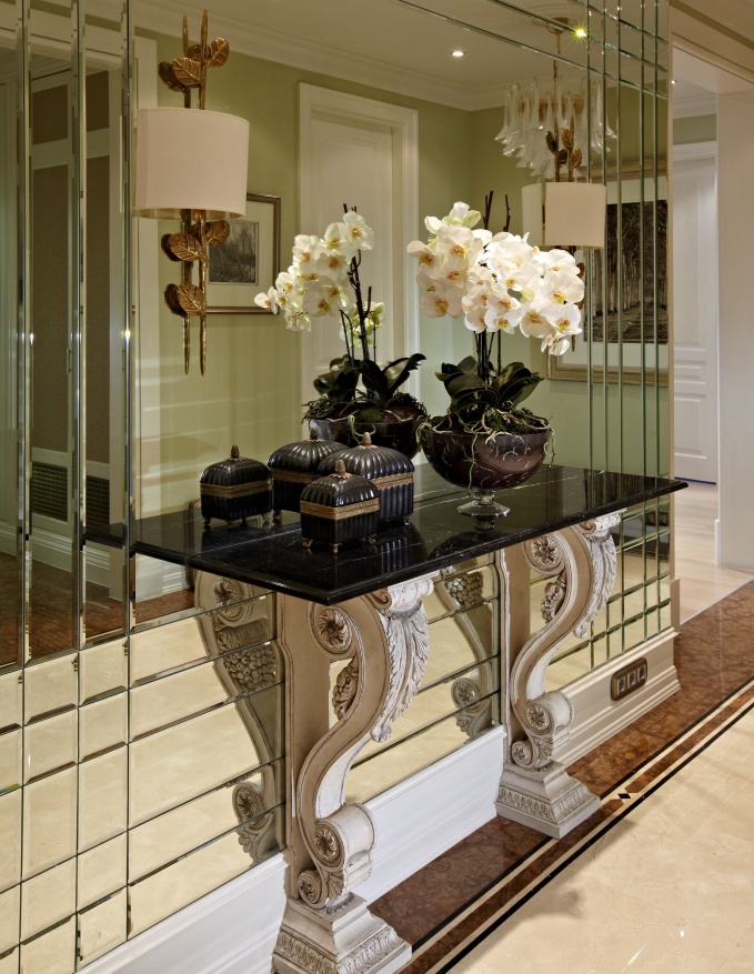Хрустальные подсвечники и статуэтки украсят спальню и будуар, композиции из искусственных цветов - холл и ванную комнату.