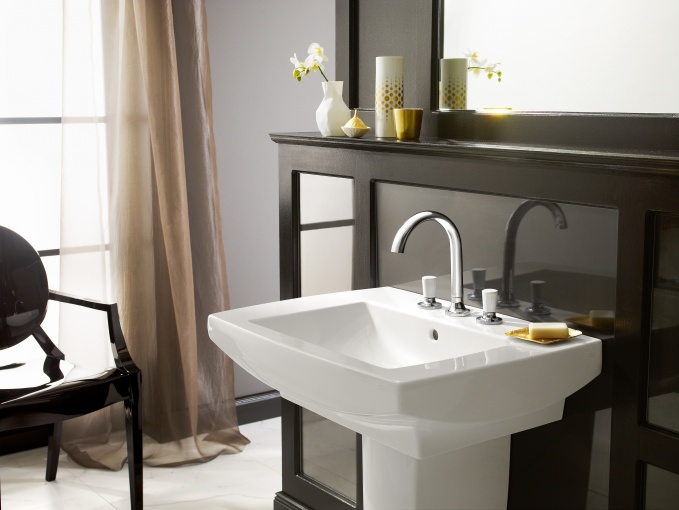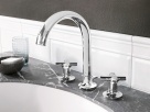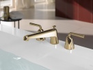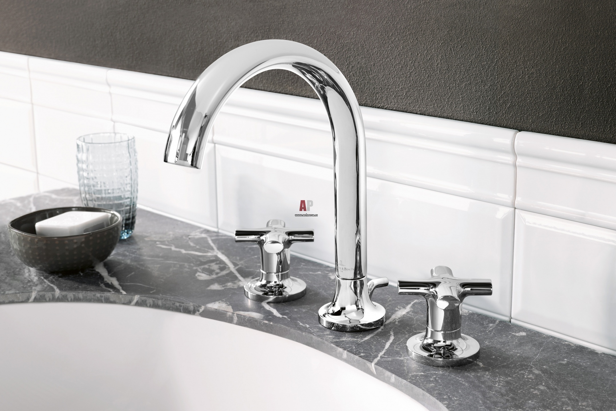 Domicil – линия традиционных смесителей на три отверстия. Центральное расположение излива между обеими ручками создает гармоничную симметрию на раковине и ванне, а выразительные детали и куполообразный корпус смесителя подчеркивают стильный дизайн Domicil.