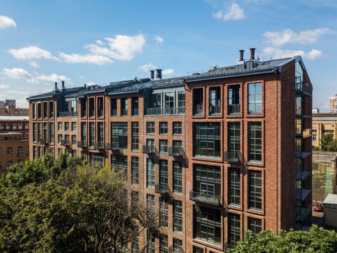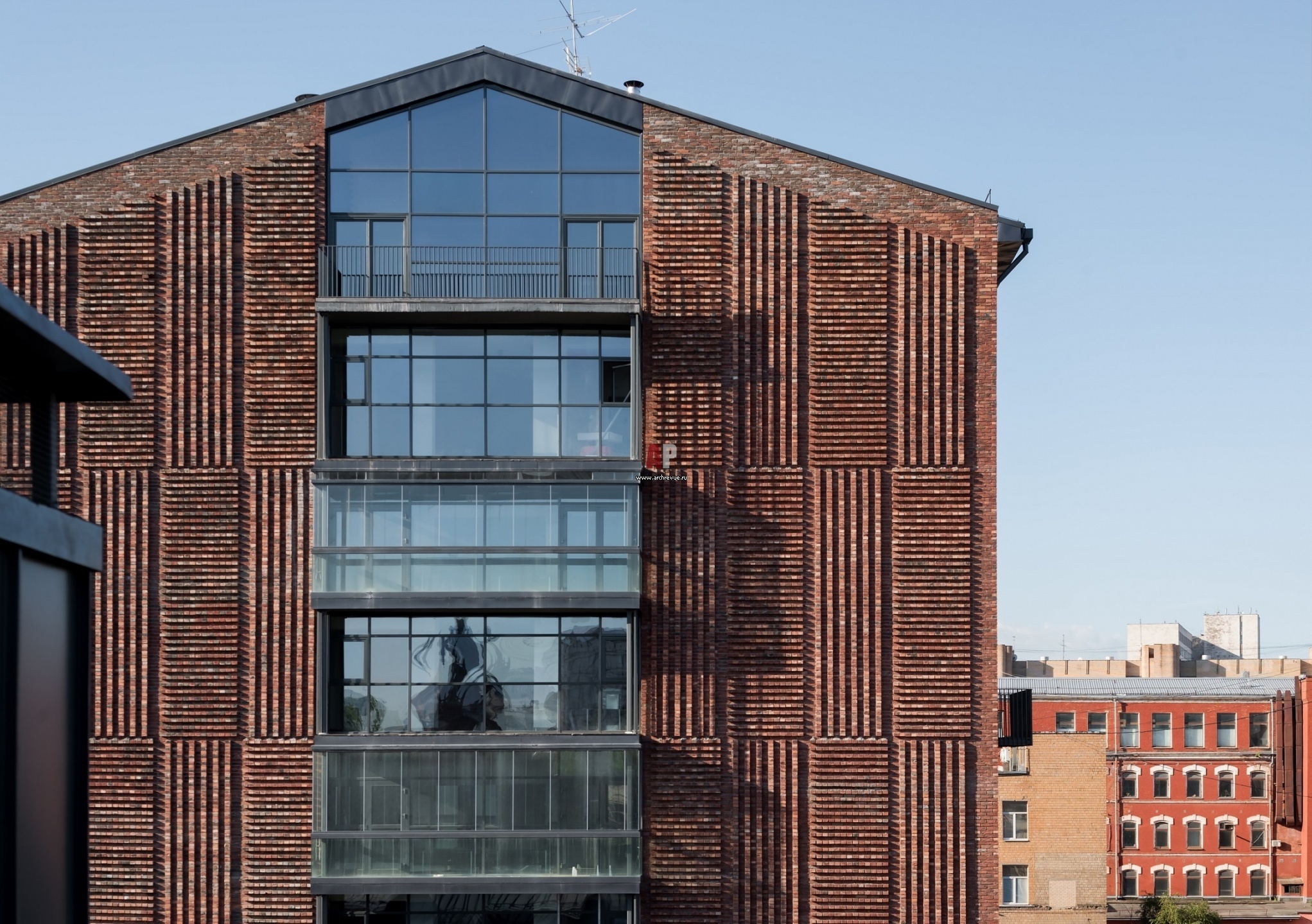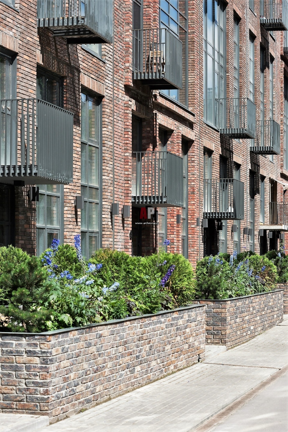 Клубный комплекс РАССВЕТ LOFT*Studio. Архитектурная группа DNK ag | Константин Ходнев, Даниил Лоренц, Наталья Сидорова. На фасадах кирпич ручной формовки «Донские зори» (Россия). В период его возведения, в 2014 году, по решению девелоперов KR Properties для облицовки фасадов ЖК использовался отечественный кирпич, автор декора моделей - архитектор Даниил Лоренц (DNK ag).