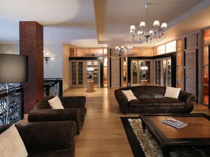 Интерьер пентхауса. Столярные работы выполнила российская компания. Российские производители отлично заполнили нишу, где не требуются тонкие сочетания и проработки.