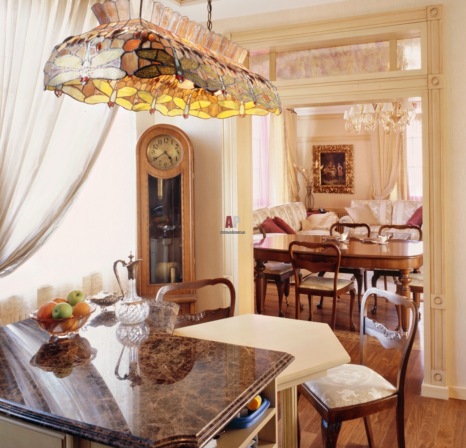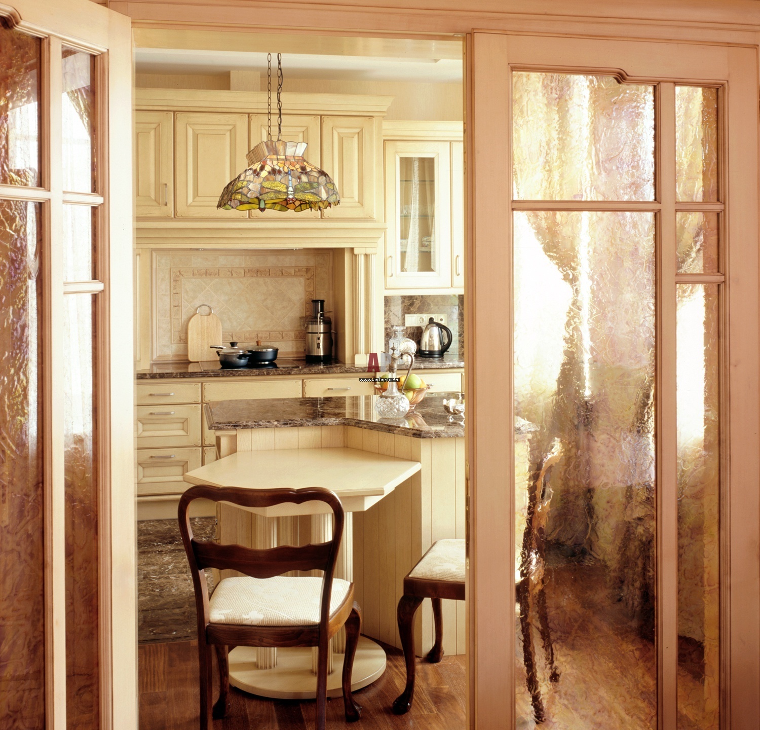 Мария Серебряная и Сергей Макушев: По внешнему виду это в огромной степени финишная отделка. Сейчас существует множество нестандартных отделок, появляется много финишей, куда входит броширование, патинирование, тонировка, которая придает дереву тончайшие изыски. Все это украшает дерево и делается вручную, а не по нашей российской традиции из пистолета, когда дерево становится похоже на пластик… Все эти техники надо чувствовать. Бывает так, что и объяснить, чего ждешь от мастера, просто невозможно. Иногда хоть сам вставай и крась, что мы и делаем!