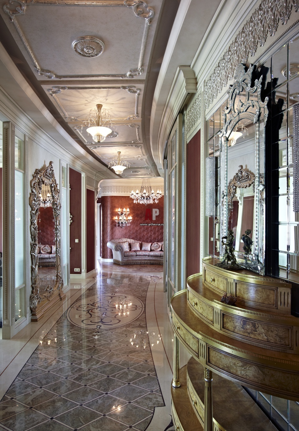 Интерьер холла. Столярные работы выполнены компанией Boiserie Italia, которой удалось воплотить тончайшие нюансы в отделке столярных изделий.