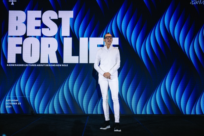Финальной точкой Форума стала лекция Карима Рашида, дизайнера с мировым именем, которая была посвящена будущему дизайна. Карим рассказал, что постепенно цифровой мир вытесняет материальный и сегодня все должно быть спроектировано таким образом, чтобы создать абсолютно непрерывное, приятное, эмпирическое существование. Будущее нашего эстетического мира пересекается со всеми эстетическими дисциплинами таким образом, чтобы дизайн, искусство, архитектура, мода, еда, музыка, культура, красота сливались воедино, привнося больше возвышенного опыта в нашу материальную и нематериальную жизнь.