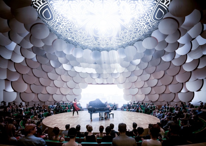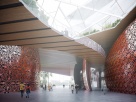 Проект победитель. Консорциум под лидерством ООО «Ваухаус» (Москва, Россия). Формы экстерьера и интерьеров вдохновлены самой Татарской душой: Острая/Закрытая снаружи и Мягкая/Гостеприимная внутри.