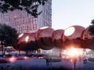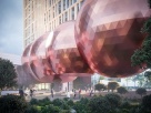 Пешеходный мост в виде цепочки зеркальных сфер необычного амарантово-пурпурного цвета можно смело назвать новым городским арт-объектом.